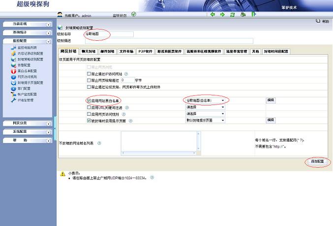 3.在“監(jiān)控配置-- >監(jiān)控電腦列表”中應(yīng)用封堵策略,如下圖所示: