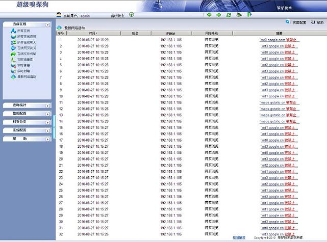 5.進(jìn)入“當(dāng)前在線”-->“最新網(wǎng)絡(luò)活動(dòng)”,我們能看到有很多的被禁止的訪問(wèn),這些都是和谷歌地圖相關(guān)的網(wǎng)址: