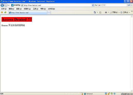 在有些情況下,您可能希望把被禁止的頁(yè)面重定向到另外一個(gè)網(wǎng)址去。比如:當(dāng)用戶(hù)訪問(wèn)一個(gè)被禁止的娛樂(lè)網(wǎng)站時(shí),自動(dòng)把網(wǎng)頁(yè)重定向到公司的工作網(wǎng)站。