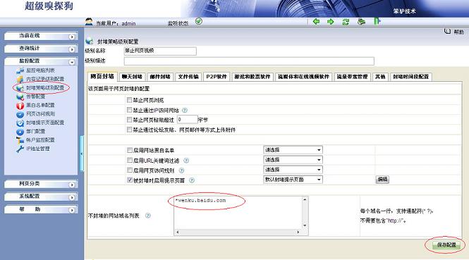 為此,超級嗅探狗的“封堵策略配置”中提供了一個“不封堵的網(wǎng)站域名列表”功能,此列表中的網(wǎng)站不受任何其他策略的影響,也不會被禁止掉。