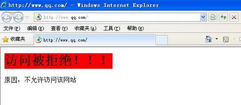 用192.168.2.0網段的機器測試一下,成功封堵了“www.qq.com”的網頁訪問