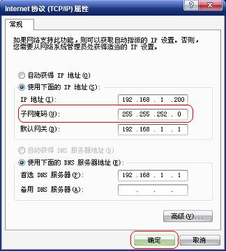 請注意:255.255.252.0只是針對192.168.1.0和192.168.2.0的網段,如果您是其他網段,子網掩碼還需要做相應的修改。