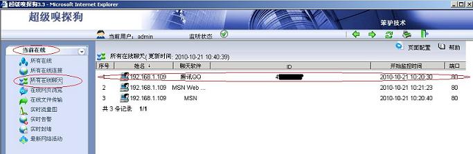 3. 接下來可以打開超級(jí)嗅探狗“當(dāng)前在線- - >所有在線聊天”如果禁止生效;QQ會(huì)自動(dòng)轉(zhuǎn)換成TCP 80或者443端口進(jìn)行通訊;如果QQ使用8000端口進(jìn)行通訊,說明UDP端口沒有禁止成功。QQ通訊協(xié)議可以參考:QQ通訊協(xié)議介紹。