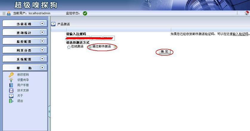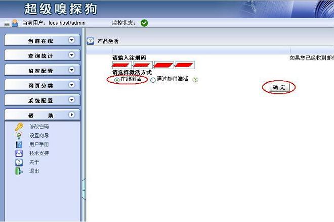 超級(jí)嗅探狗支持兩種激活方式:在線激活、郵件激活。