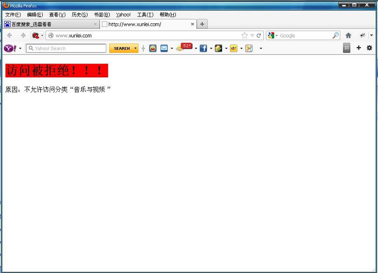 當被實施該封堵的電腦訪問您所禁止的視頻網(wǎng)站時,會出現(xiàn)以下封堵頁面: