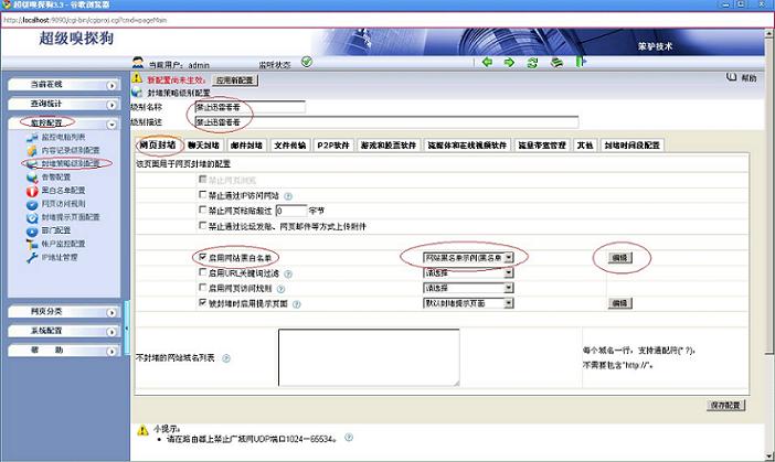 1.打開超級嗅探狗,在“監(jiān)控配置-- >封堵策略級別配置-- >新增級別-- >禁止迅雷看看”,配置如下圖所示: