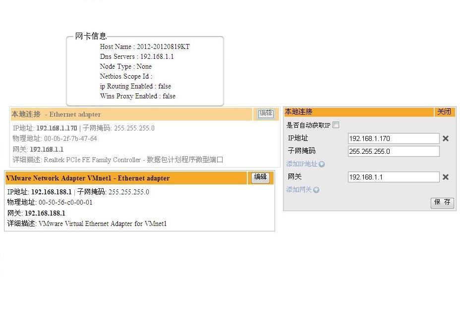 該插件可以用來修改IP、子網(wǎng)掩碼和網(wǎng)關(guān)等信息 |