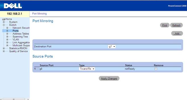 利用Dell 2884配置端口鏡像,配置如下圖: