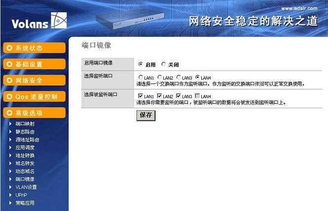 飛魚星路由器端口鏡像的配置如下圖: