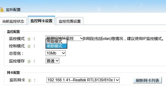 在WFilter里選擇串聯(lián)模式,監(jiān)聽內(nèi)網(wǎng)網(wǎng)卡,保存并應(yīng)用新配置后即可實(shí)現(xiàn)監(jiān)控。
