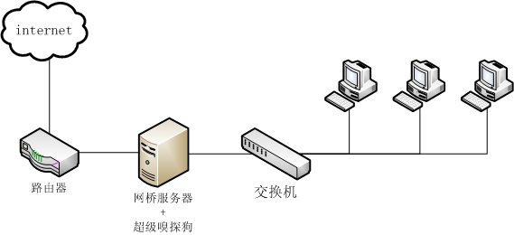 “網(wǎng)橋”使用兩塊網(wǎng)卡,可以透明串接在網(wǎng)絡(luò)中,不需要修改其他電腦的配置就可以對(duì)網(wǎng)絡(luò)進(jìn)行監(jiān)控管理。